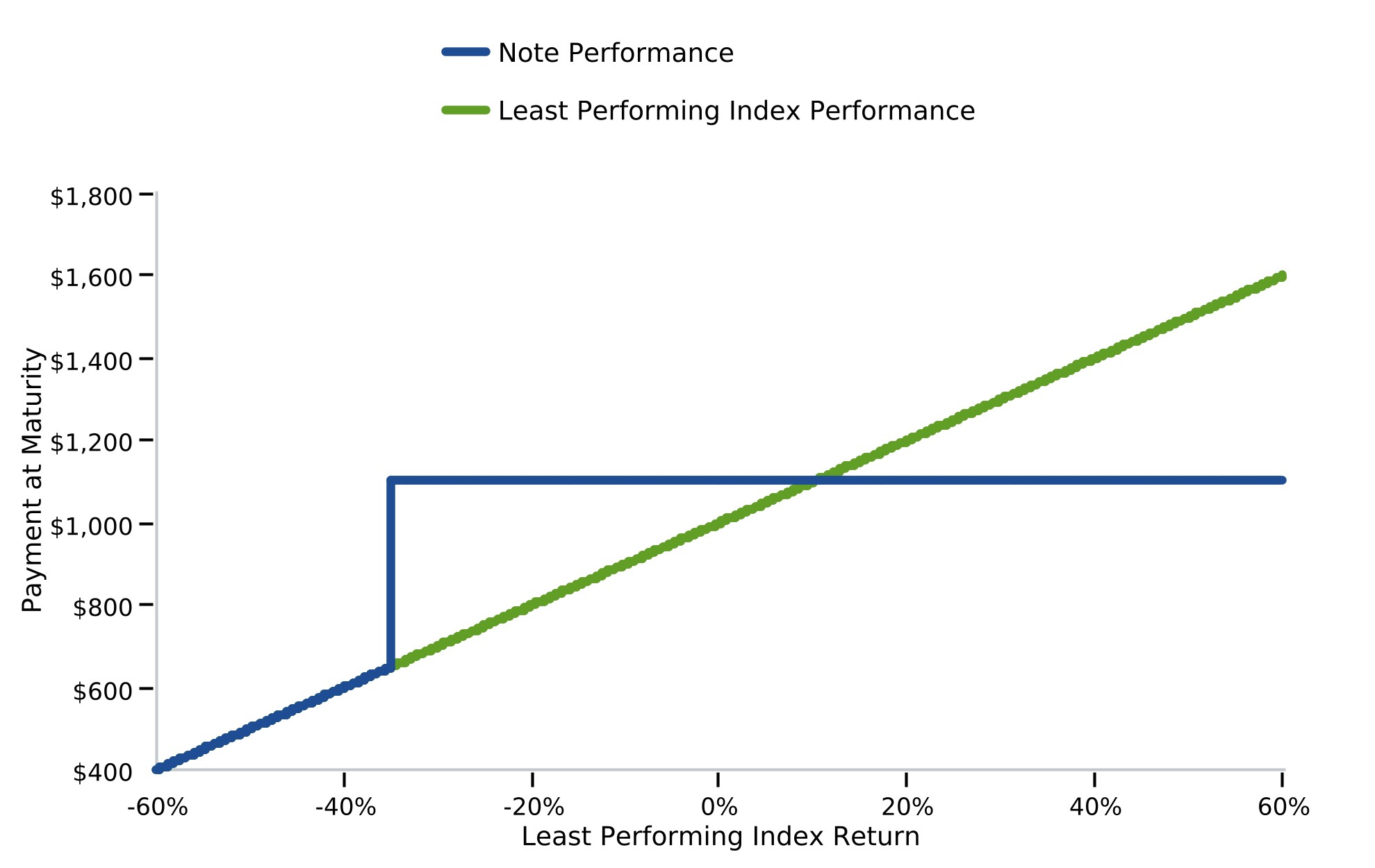 ●For example, if the closing level of the Least Performing Index declines 60.00%, investors will lose 60.00% of their principal amount and receive only $400.00 per $1,000 principal amount note at maturity.