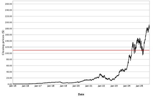 The following graphs set forth historical closing values of the Underliers for the period from January 1, 2015 to October 17, 2025. Each red line represents the Coupon Threshold and Barrier Value of the relevant Underlier. We obtained the information in the graphs from Bloomberg Financial Markets, without independent investigation. We cannot give you assurance that the performance of the Underliers will result in the return of all of your initial investment.