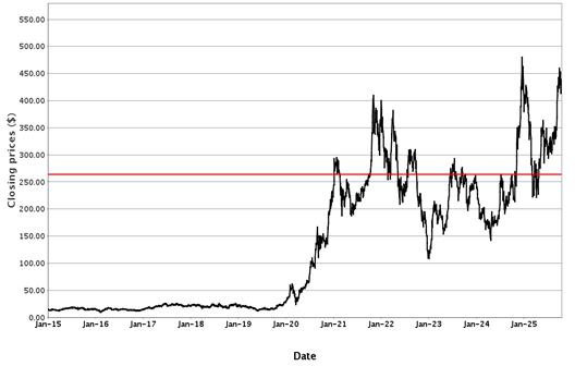 | TSLA Underlier | TSLA UW | $439.31 | $263.59 |