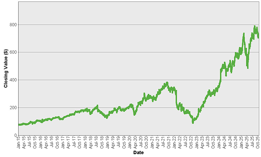 The graph below shows the closing value of Meta Platforms, Inc. for each day such value was available from January 2, 2015 to October 20, 2025. We obtained the closing values from Bloomberg L.P., without independent verification. If certain corporate transactions occurred during the historical period shown below, including, but not limited to, spin-offs or mergers, then the closing values shown below for the period prior to the occurrence of any such transaction have been adjusted by Bloomberg L.P. as if any such transaction had occurred prior to the first day in the period shown below. You should not take historical closing values as an indication of future performance.