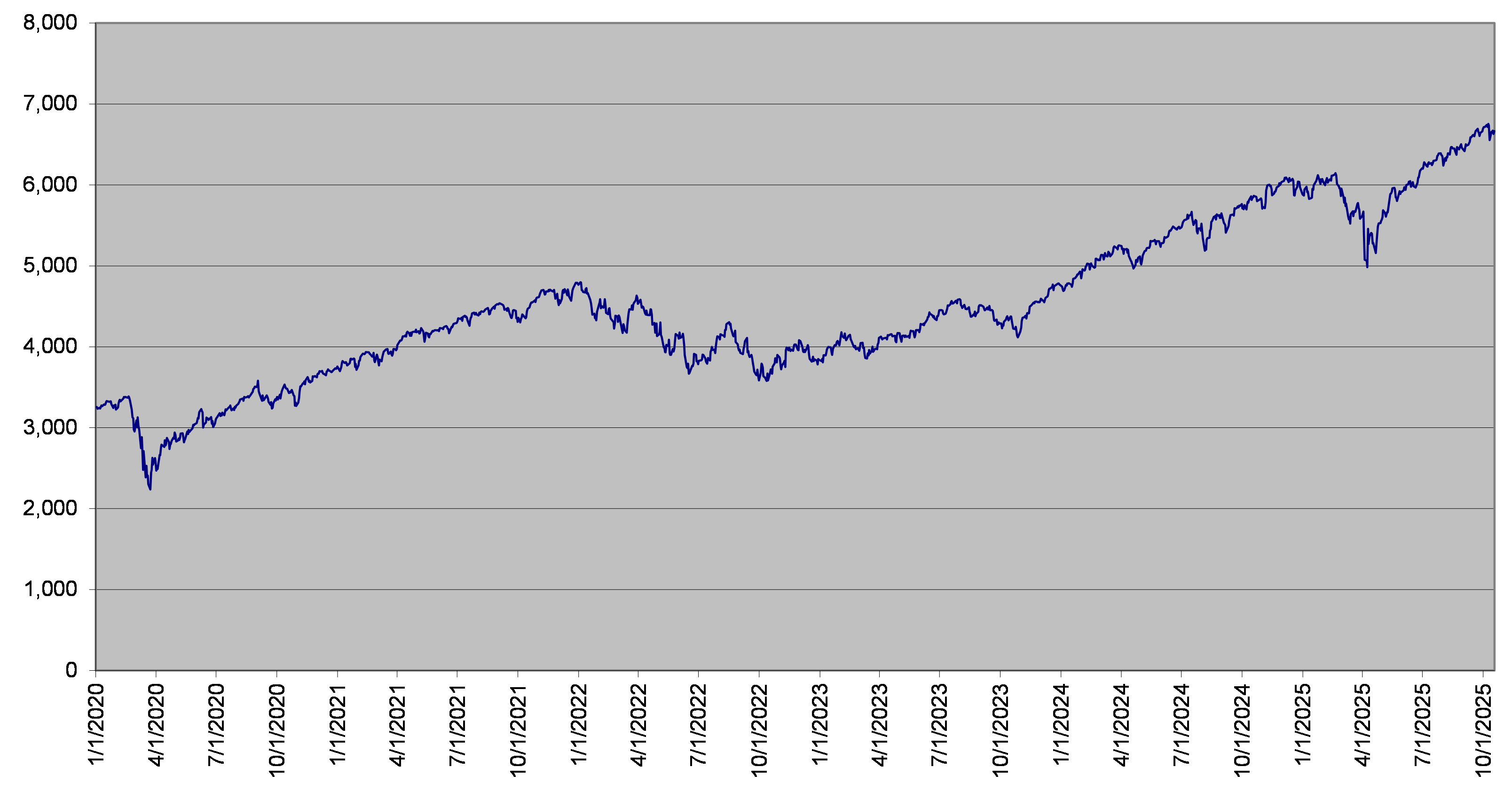 SPX Index Daily Closing Levels January 1, 2020 to October 17, 2025 |