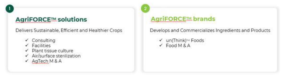 The Company is an innovative sustainable technology focused company that strives to innovate and deliver sustainable technology solutions across a wide array of vertical utilization of our proprietary intellectual property to businesses and enterprises through our AgriFORCE™ Solutions division (“Solutions”) and deliver innovative flour products through our AgriFORCE™ Brands division (“Brands”). In 2024, the Company bought the assets of the Radical Clean Solutions (“RCS”) business for which it had bought an exclusive license to the agricultural industry in 2023. During 2023, the Company commenced efforts to launch its UN(THINK) Awakened Flour™, which is a nutritious flour that we believe provides health advantages over traditional flour.