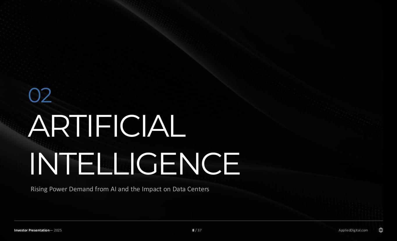 ARTIFICIAL INTELLIGENCE AppliedDigital.com Rising Power Demand from AI and the Impact on Data Centers Investor Presentation— 2025 02 8 / 37