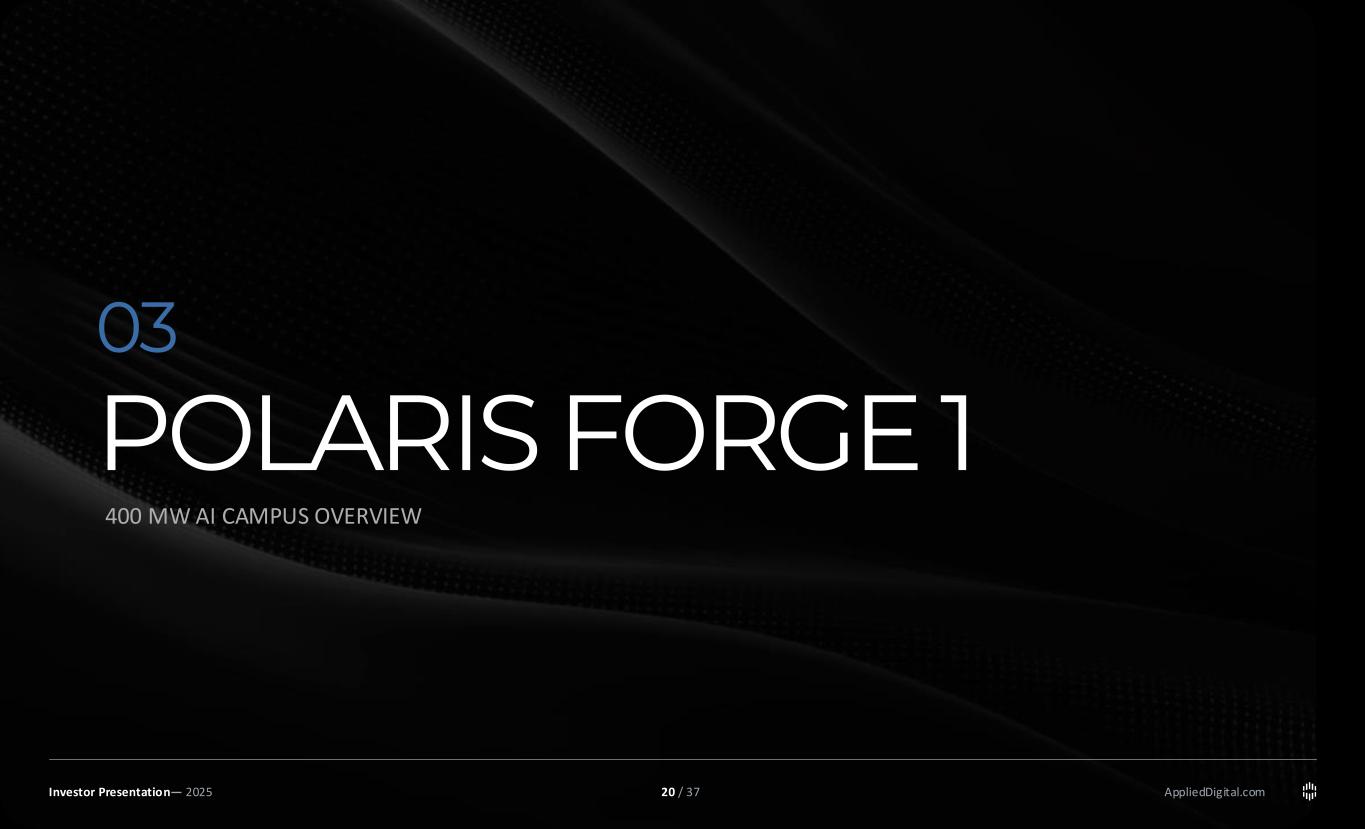 POLARIS FORGE 1 03 AppliedDigital.com 400 MW AI CAMPUS OVERVIEW Investor Presentation— 2025 20 / 37