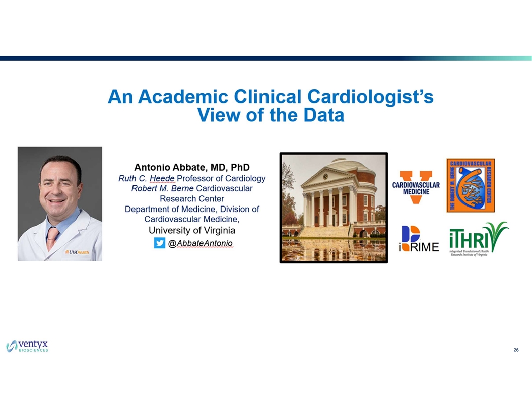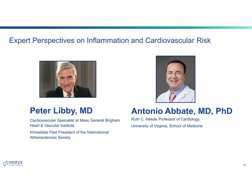 Expert Perspectives on Inflammation and Cardiovascular Risk Peter Libby, MD Antonio Abbate, MD, PhD Ruth C. Heede Professor of Cardiology, Cardiovascular Specialist at Mass General Brigham Heart & Vascular Institute University of Virginia, School of Medicine Immediate Past President of the International Atherosclerosis Society 25