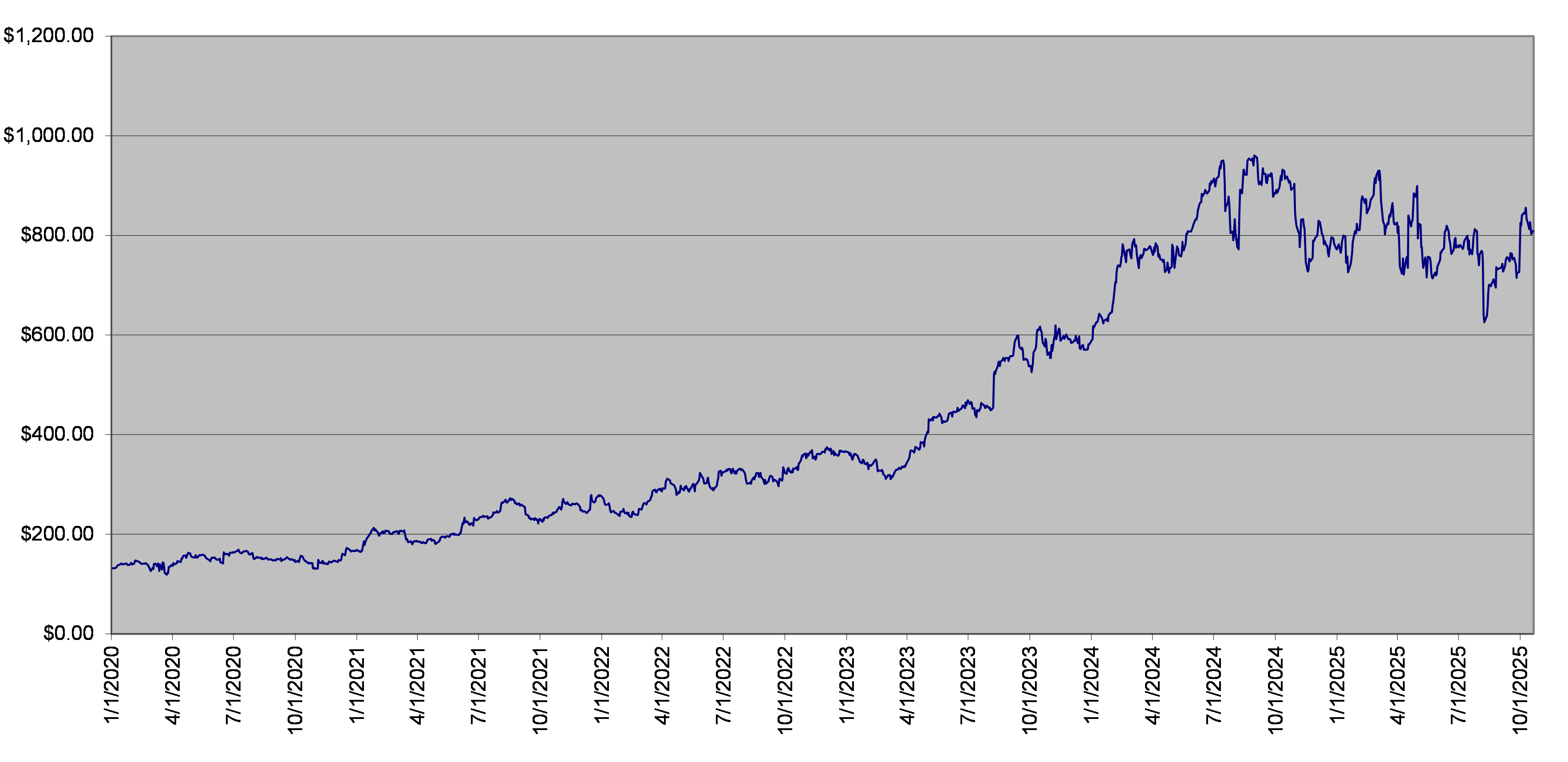 Underlier Daily Closing Levels January 1, 2020 to October 20, 2025 |