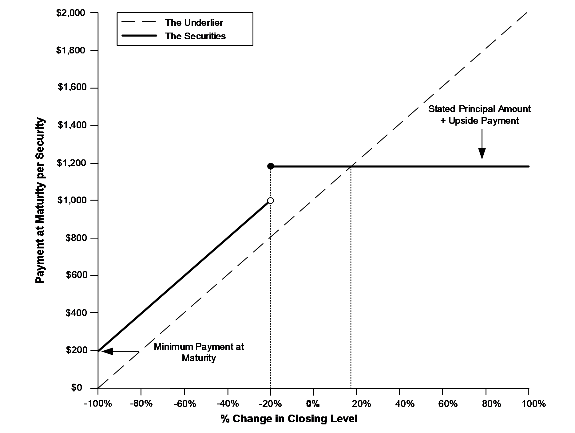 ■Payment at maturity. At maturity, if the final level is greater than or equal to the buffer level, investors will receive the stated principal amount plus the upside payment specified herein. If, however, the final level is less than the buffer level, investors will lose 1% for every 1% decline in the level of the underlier beyond the specified buffer amount. Under these circumstances, the payment at maturity will be less, and may be significantly less, than the stated principal amount of the securities, subject to the minimum payment at maturity.