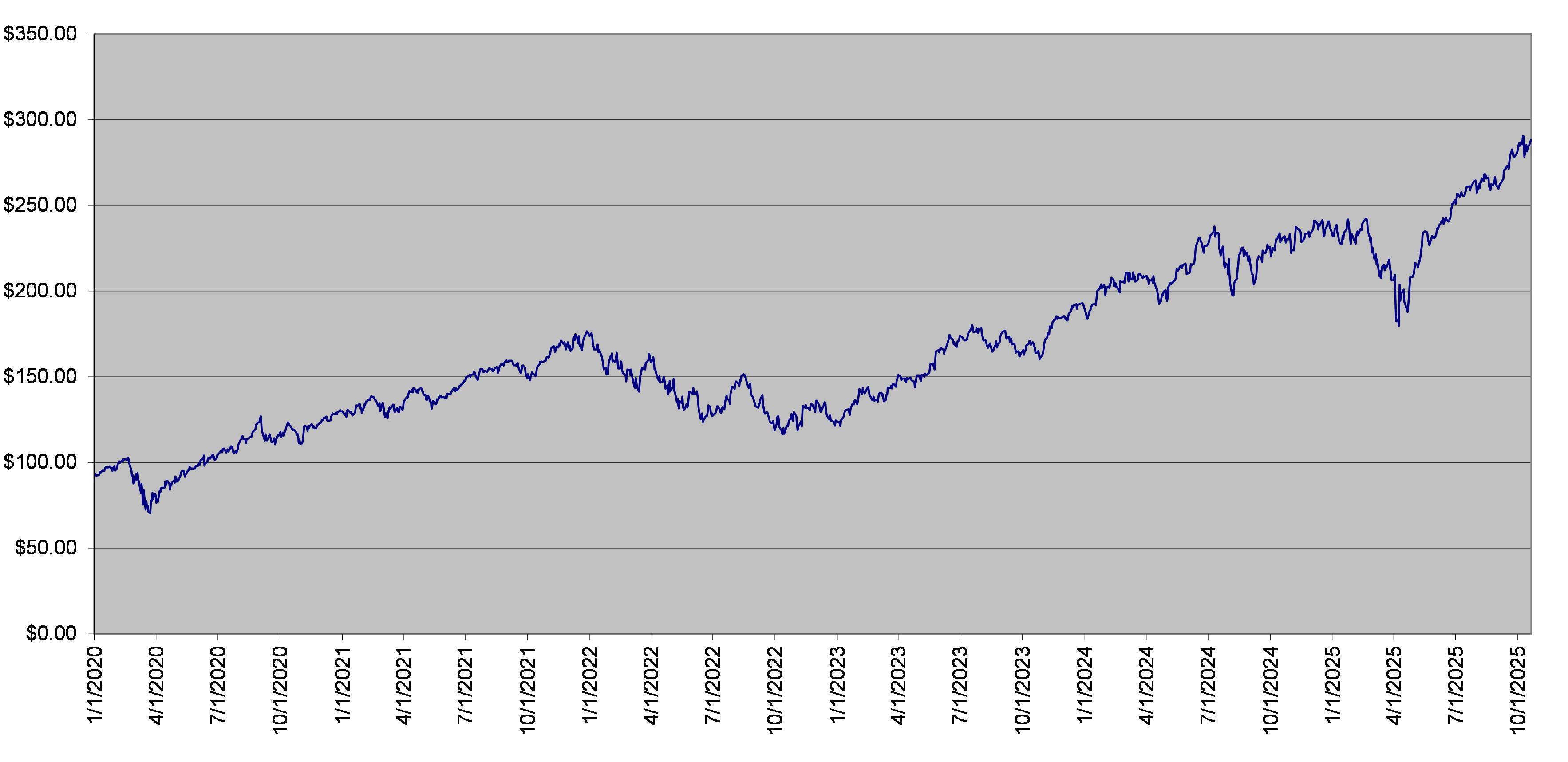 XLK Fund Daily Closing Levels January 1, 2020 to October 20, 2025 |