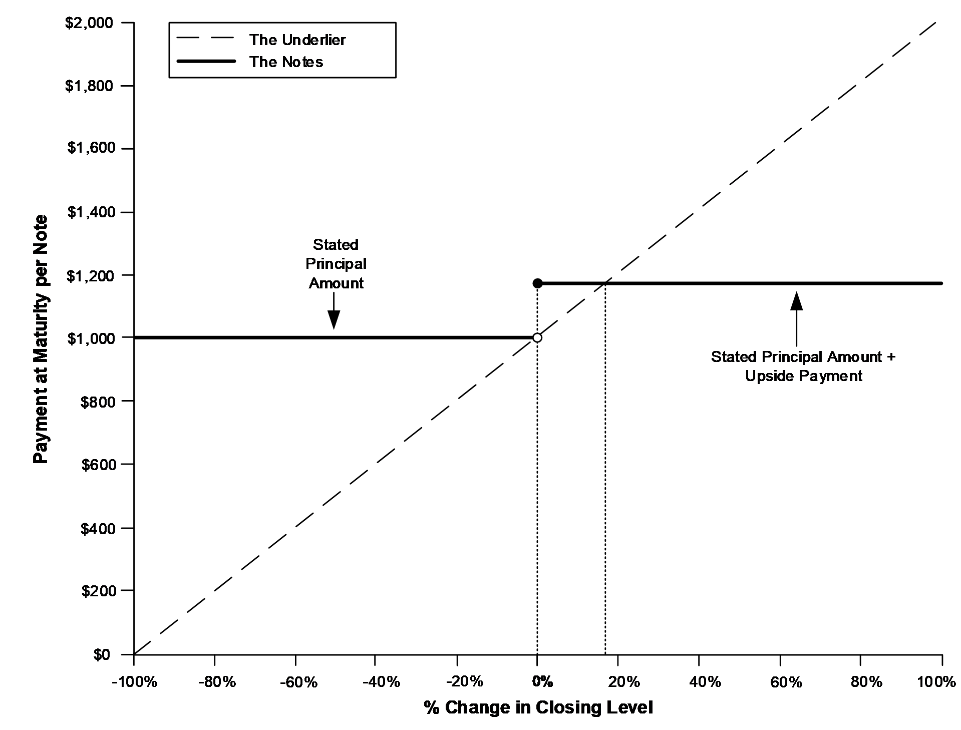■Payment at maturity. At maturity, if the final level is greater than or equal to the initial level, investors will receive the stated principal amount plus the upside payment specified herein. If, however, the final level is less than the initial level, investors will receive only the stated principal amount at maturity.
