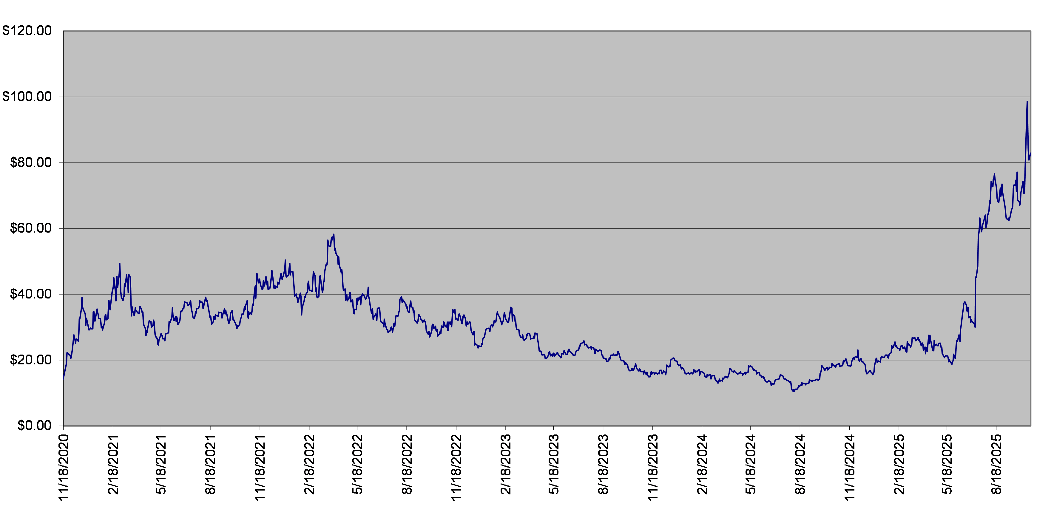 The closing level of the underlier on October 20, 2025 was $82.90. The following graph sets forth the daily closing levels of the underlier for the period noted below. We obtained the historical information presented in this document from Bloomberg Financial Markets, without independent verification. The underlier has at times experienced periods of high volatility. You should not take the historical closing levels of the underlier as an indication of its future performance, and no assurance can be given as to the closing level of the underlier at any time.