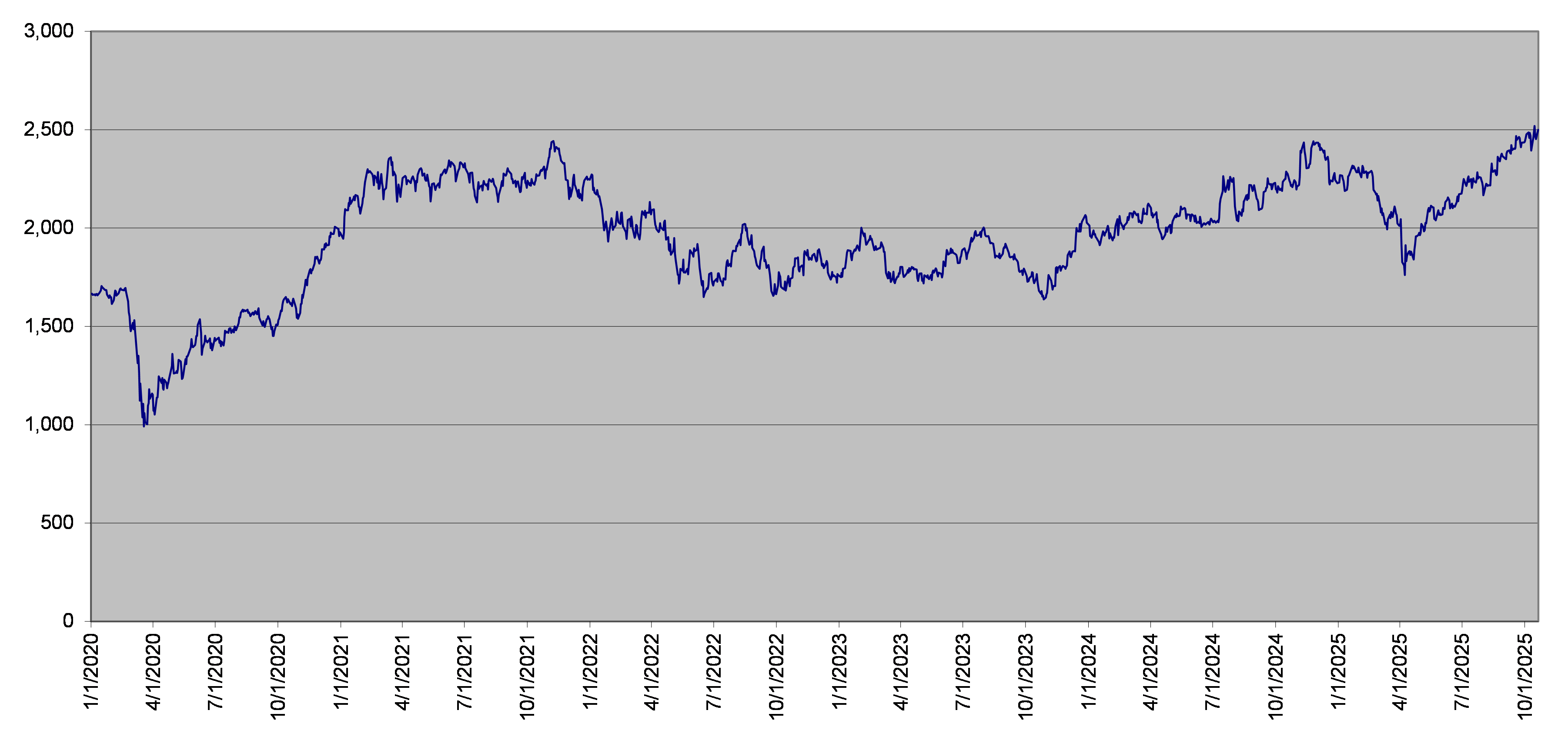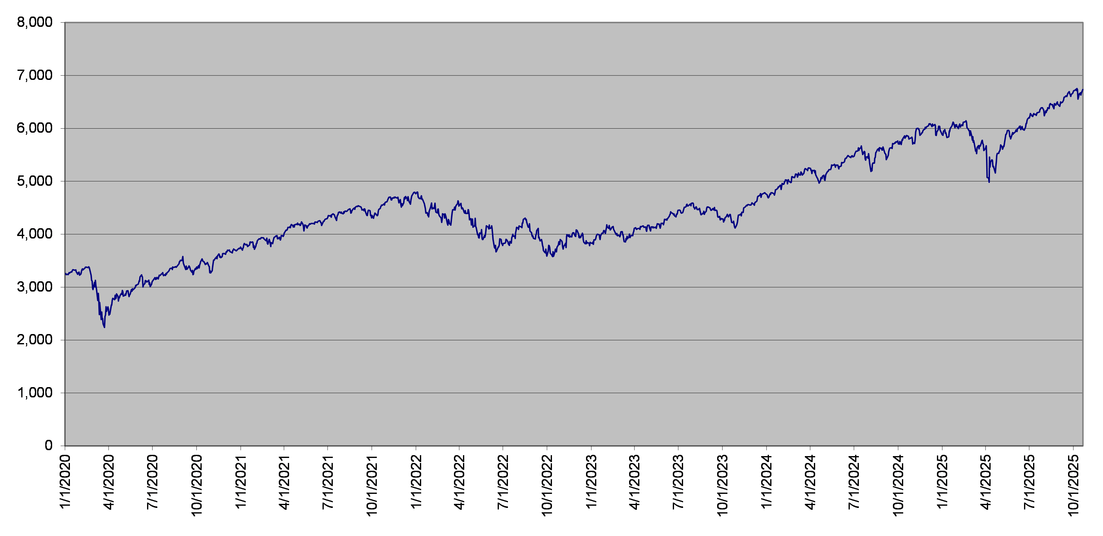 SPX Index Daily Closing Levels January 1, 2020 to October 20, 2025 |