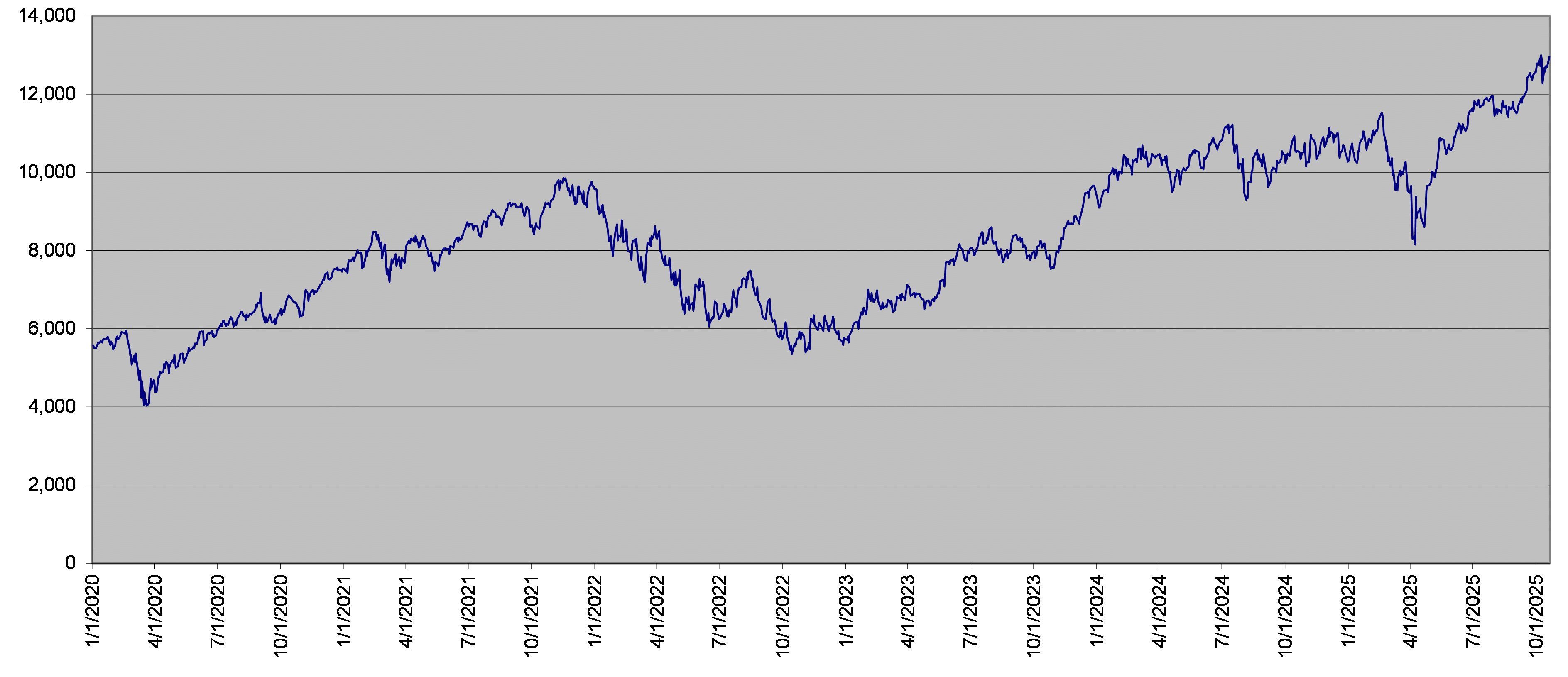 NDXT Index Daily Closing Levels January 1, 2020 to October 20, 2025 |