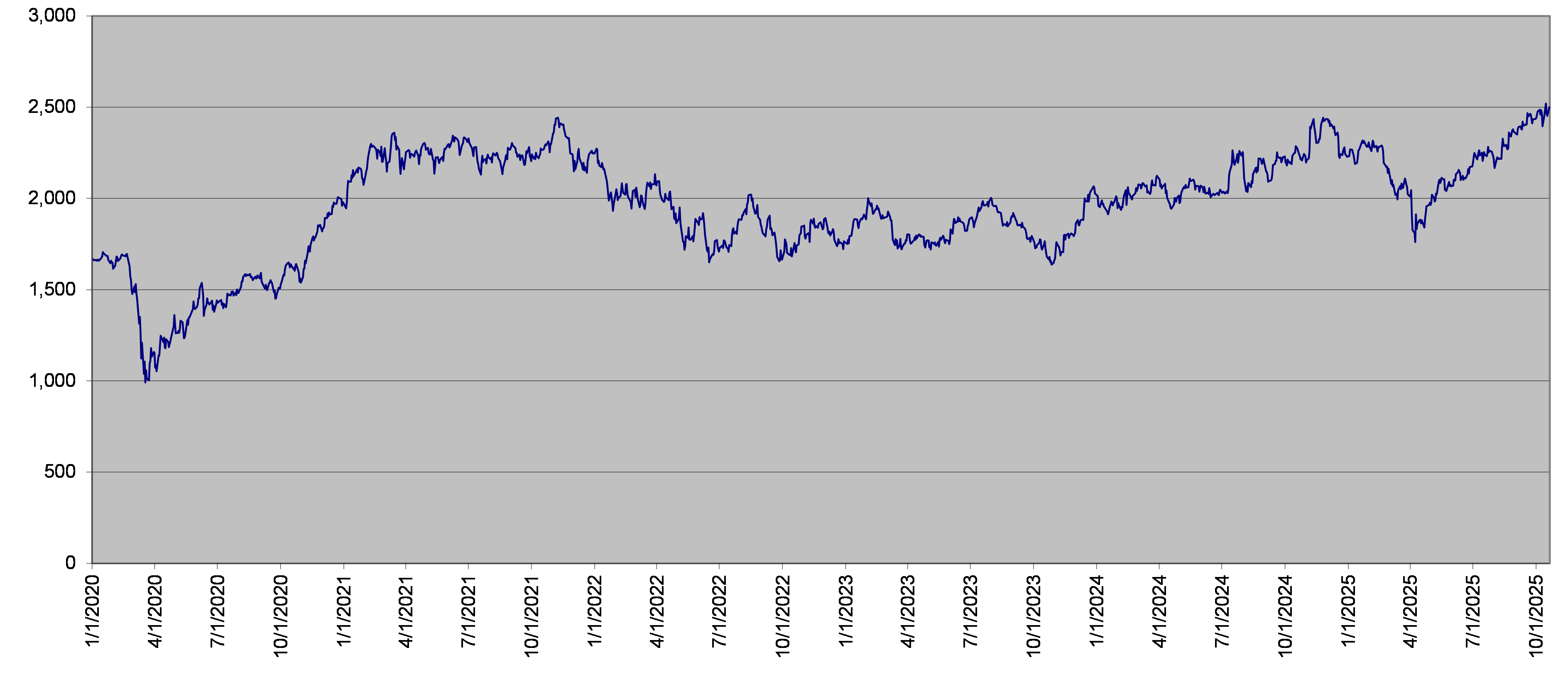 SPX Index Daily Closing Levels January 1, 2020 to October 20, 2025 |