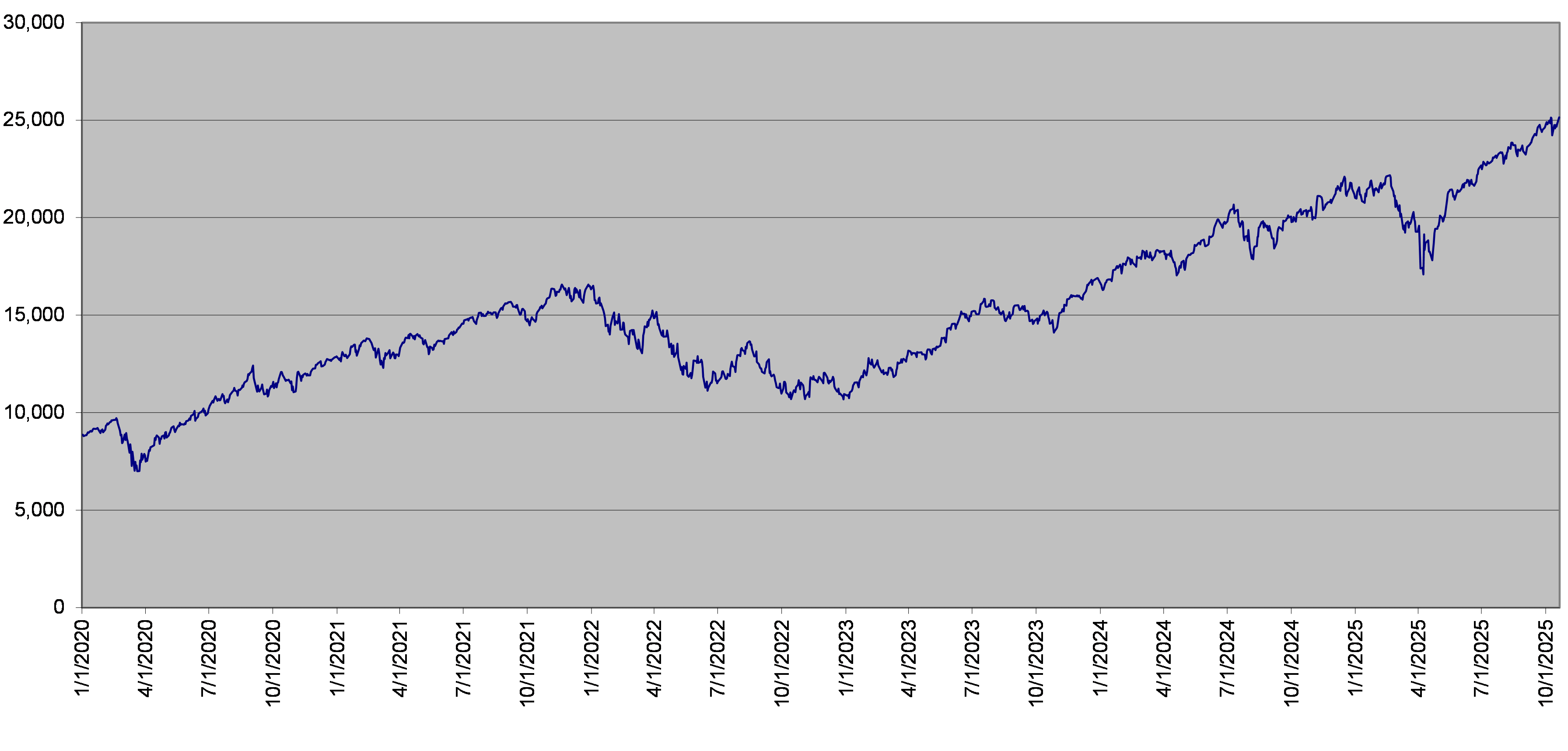NDX Index Daily Closing Levels January 1, 2020 to October 20, 2025 |
