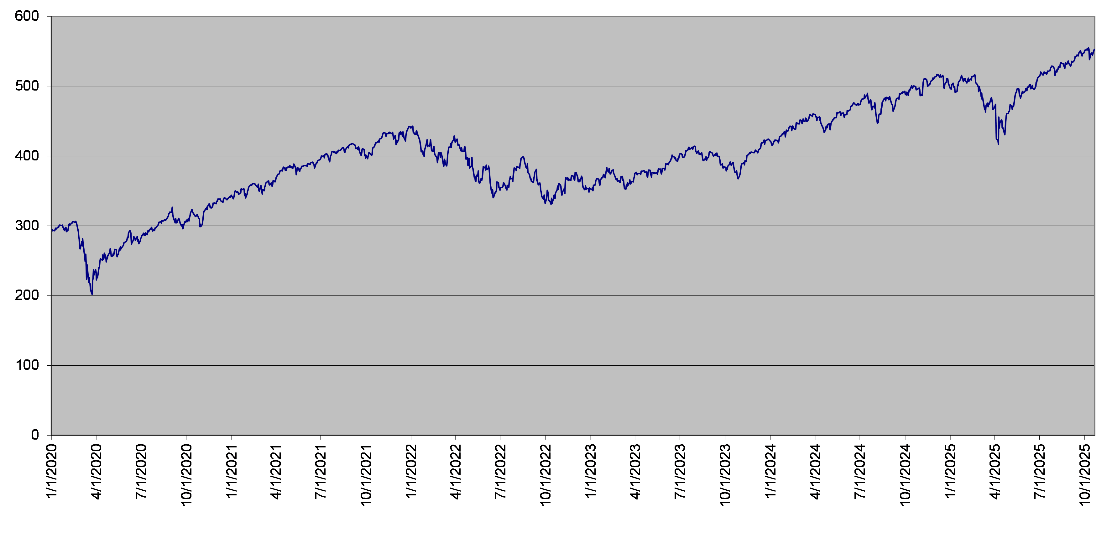 SPXFP Index Daily Closing Levels January 1, 2020 to October 20, 2025 |