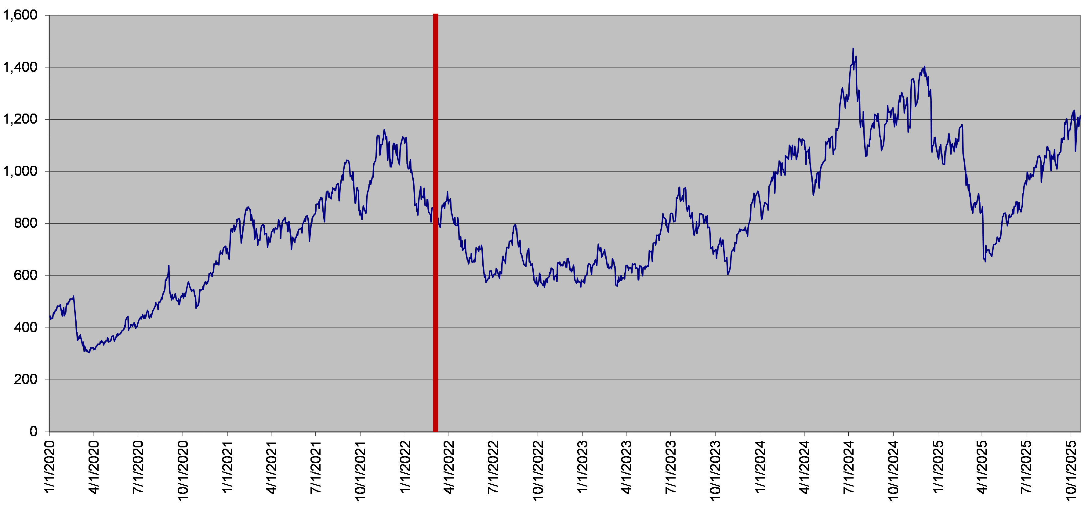 Underlier Daily Closing Levels January 1, 2020* to October 20, 2025 |