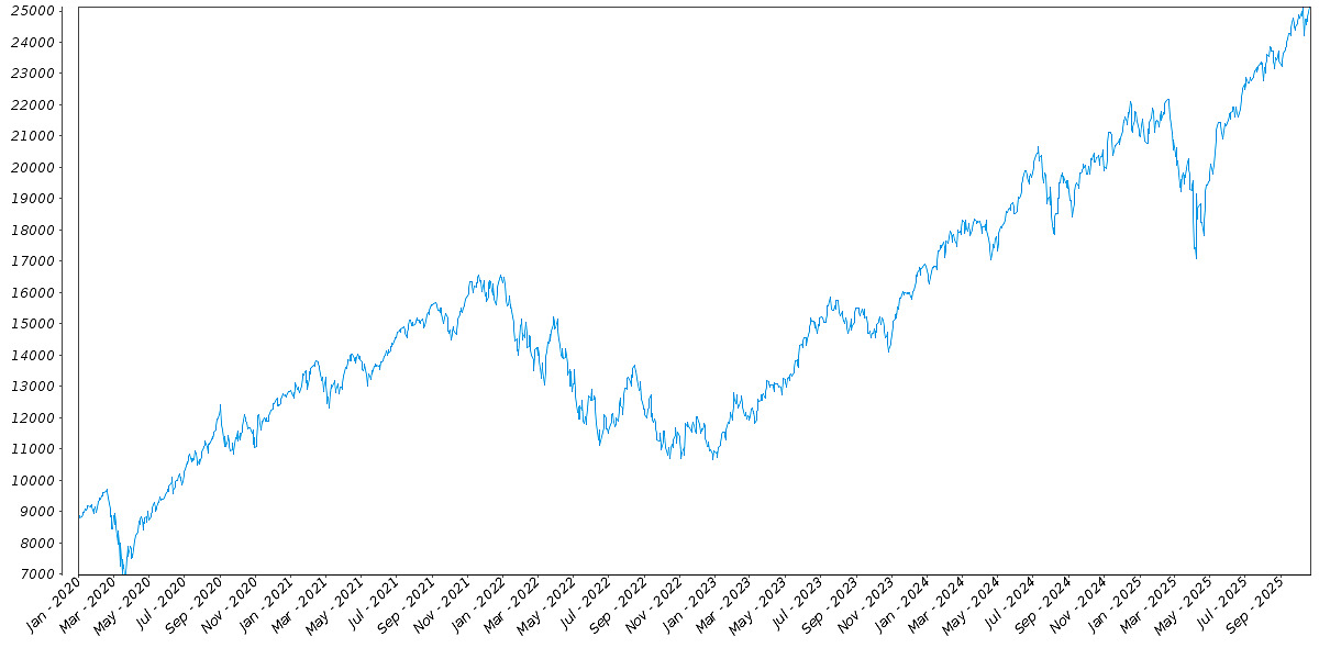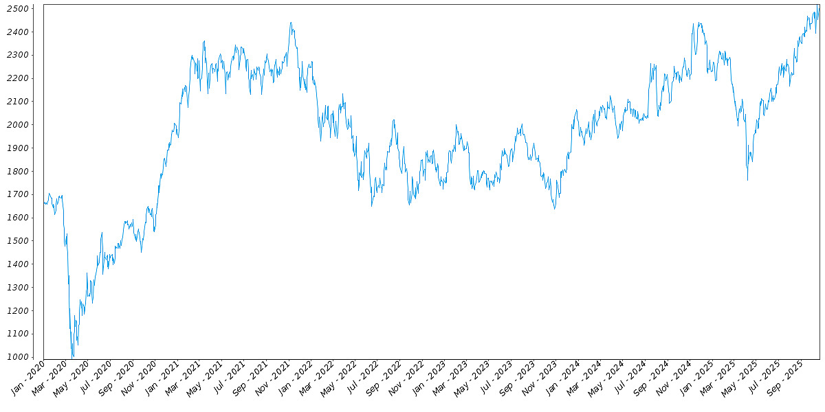 The following graph sets forth the daily historical performance of the SPX in the period from January 2, 2020 through October 21, 2025. We obtained this historical data from Bloomberg L.P. We have not independently verified the accuracy or completeness of the information obtained from Bloomberg L.P. On October 21, 2025, the closing level of the SPX was 6,735.35.