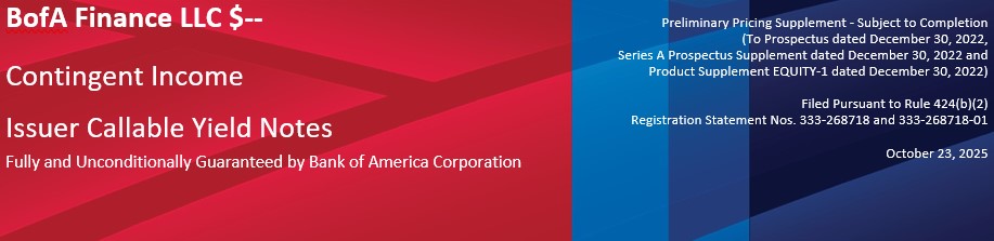 All payments on the Notes are subject to the credit risk of BofA Finance LLC (“BofA Finance” or the “Issuer”), as issuer of the Notes, and Bank of America Corporation (“BAC” or the “Guarantor”), as guarantor of the Notes. |