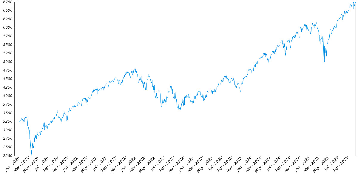 The following graph sets forth the daily historical performance of the SPX in the period from January 2, 2020 through October 22, 2025. We obtained this historical data from Bloomberg L.P. We have not independently verified the accuracy or completeness of the information obtained from Bloomberg L.P. On October 22, 2025, the closing level of the SPX was 6,699.40.
