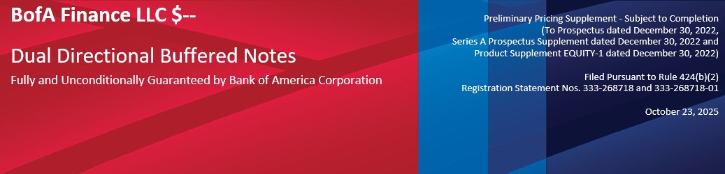 Any payment on the Notes is subject to the credit risk of BofA Finance LLC (“BofA Finance” or the “Issuer”), as issuer of the Notes, and Bank of America Corporation (“BAC” or the “Guarantor”), as guarantor of the Notes.