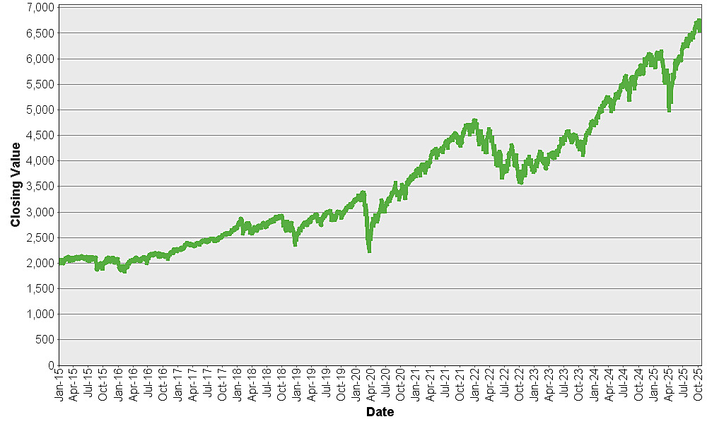 The graph below shows the closing value of the S&P 500® Index for each day such value was available from January 2, 2015 to October 23, 2025. We obtained the closing values from Bloomberg L.P., without independent verification. You should not take historical closing values as an indication of future performance.