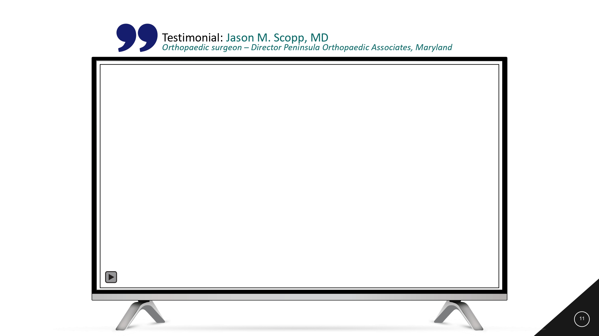 Testimonial: Jason M. Scopp, MD Orthopaedic surgeon – Director Peninsula Orthopaedic Associates, Maryland 11 11