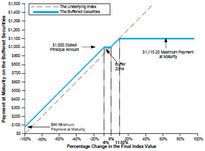8%. As a result of the buffer amount of 8%, the value at or above which the underlying index must close on the valuation date so that investors do not suffer a loss on their initial investment in the Buffered Securities is 92% of the initial index value. |