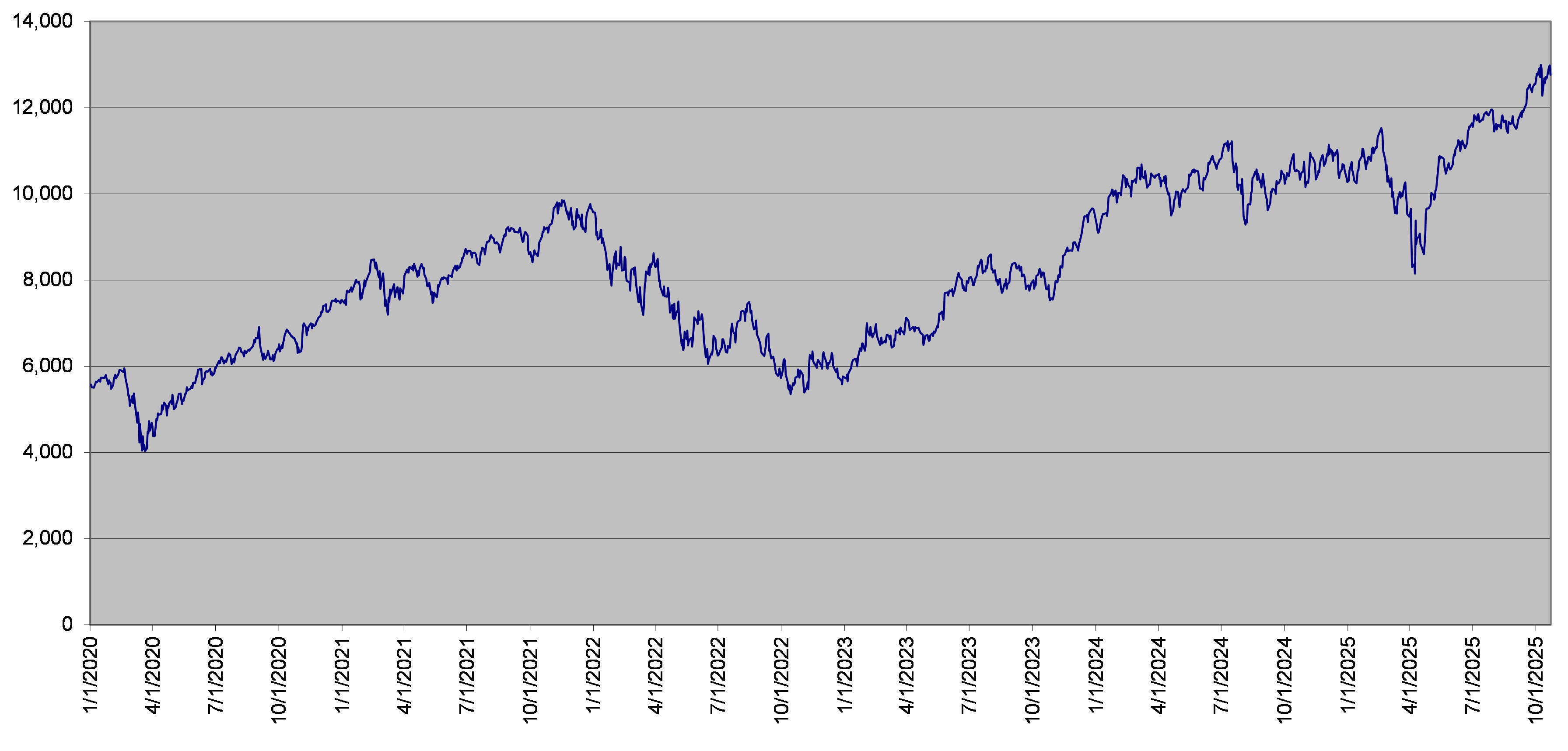 | NDXT Index Daily Closing Levels January 1, 2020 to October 22, 2025 |