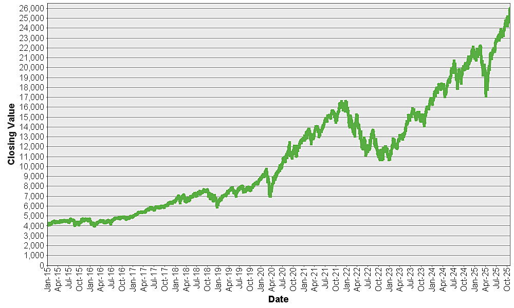 The graph below shows the closing value of the Nasdaq-100 Index® for each day such value was available from January 2, 2015 to October 28, 2025. We obtained the closing values from Bloomberg L.P., without independent verification. You should not take historical closing values as an indication of future performance.
