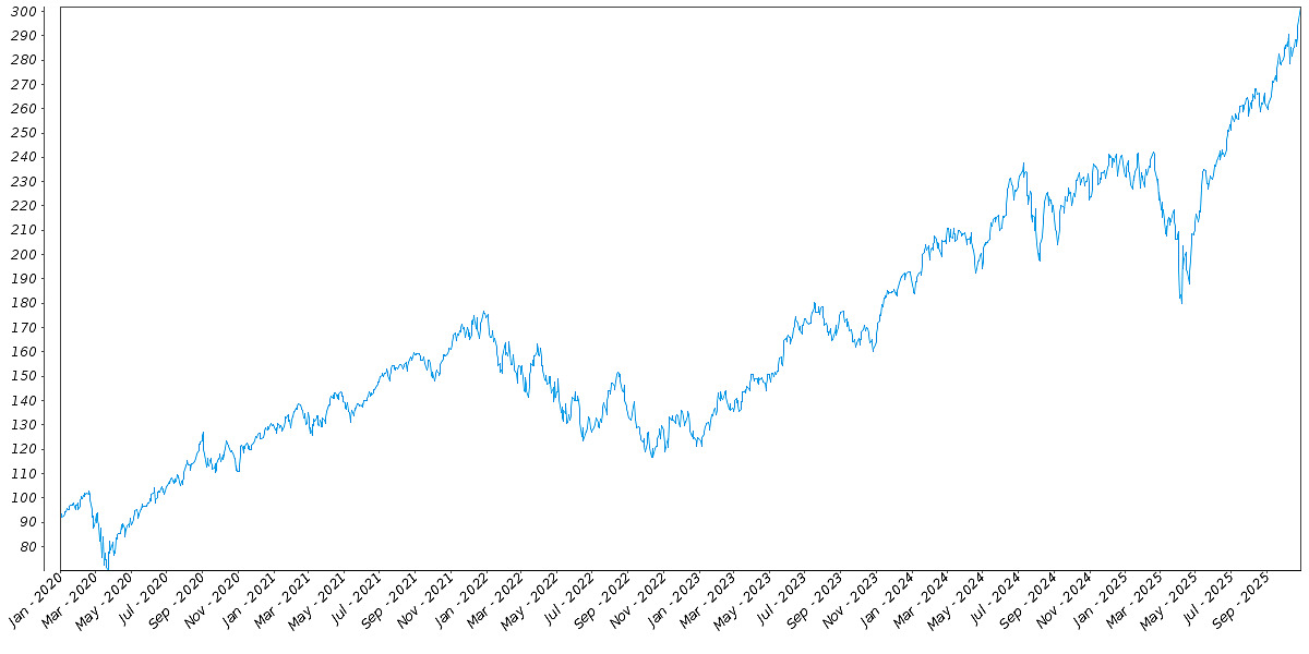 The following graph sets forth the daily historical performance of the XLK in the period from January 2, 2020 through October 28, 2025. We obtained this historical data from Bloomberg L.P. We have not independently verified the accuracy or completeness of the information obtained from Bloomberg L.P. On October 28, 2025, the Closing Market Price of the XLK was $301.96.