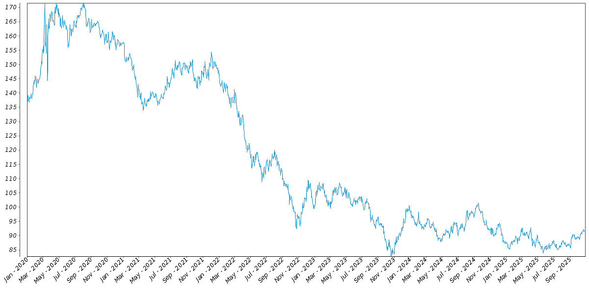 The following graph sets forth the daily historical performance of the TLT in the period from January 2, 2020 through October 28, 2025. We obtained this historical data from Bloomberg L.P. We have not independently verified the accuracy or completeness of the information obtained from Bloomberg L.P. On October 28, 2025, the Closing Market Price of the TLT was $92.02.