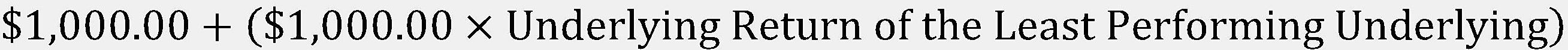 For each $1,000.00 in principal amount of Notes, $1,000.00, plus the applicable Contingent Coupon Payment if the Observation Value of each Underlying on the corresponding Observation Date is greater than or equal to its Coupon Barrier. |