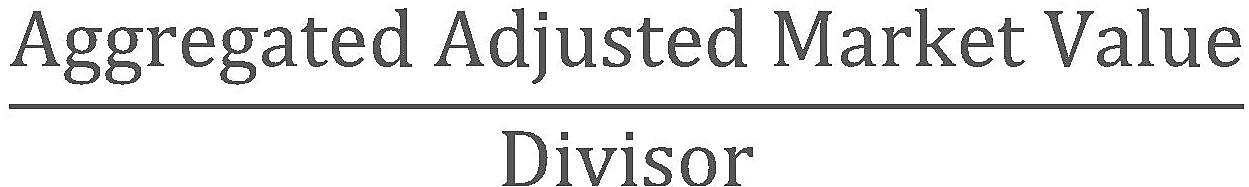 The SPX is calculated using a base-weighted aggregate methodology. The level of the SPX reflects the total market value of all component stocks relative to the base period of the years 1941 through 1943. An indexed number is used to represent the results of this calculation in order to make the level easier to work with and track over time. The actual total market value of the component stocks during the base period of the years 1941 through 1943 has been set to an indexed level of 10. This is often indicated by the notation 1941- 43 = 10. In practice, the daily calculation of the SPX is computed by dividing the total market value of the component stocks by the “index divisor.” By itself, the index divisor is an arbitrary number. However, in the context of the calculation of the SPX, it serves as a link to the original base period level of the SPX. The index divisor keeps the SPX comparable over time and is the manipulation point for all adjustments to the SPX, which is index maintenance.