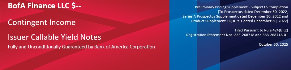 All payments on the Notes are subject to the credit risk of BofA Finance LLC (“BofA Finance” or the “Issuer”), as issuer of the Notes, and Bank of America Corporation (“BAC” or the “Guarantor”), as guarantor of the Notes. |