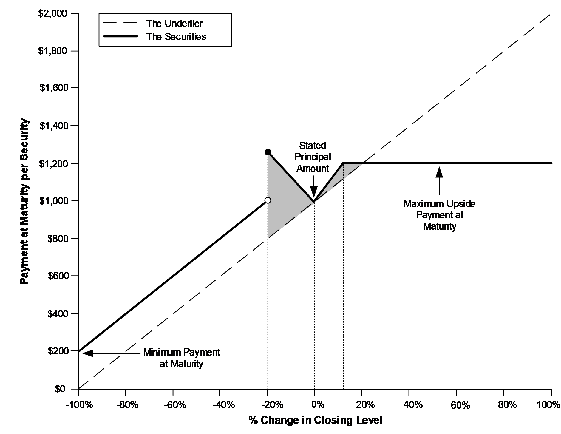 oIf the underlier appreciates 100%, investors will receive only the maximum upside payment at maturity of $1,202.30 per security, or 120.23% of the stated principal amount.
