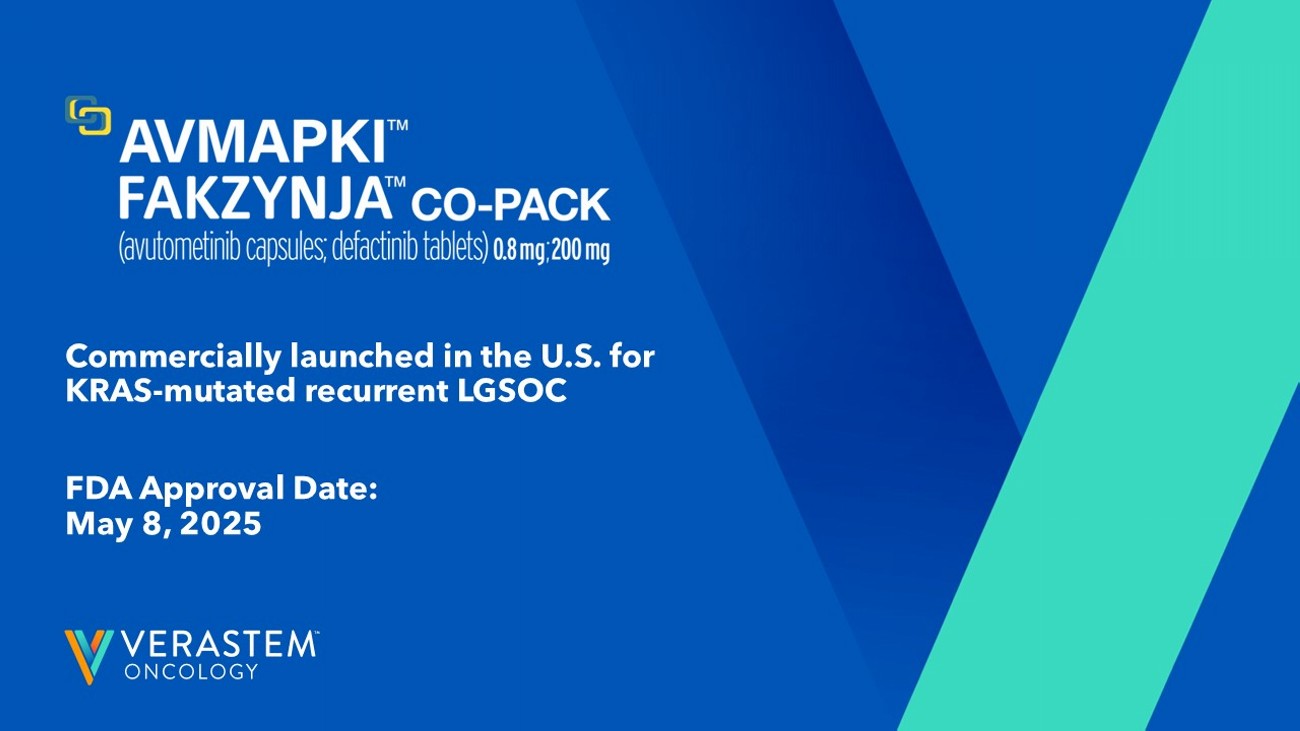 2 Forward - Looking Statements This presentation includes forward - looking statements about, among other things, Verastem Oncology’s (the “Company”) programs an d product candidates, strategy, future plans and prospects, including statements related to the approval and commercialization of AVMAPKIFAKZYNJACO - PACK ( avutometinib capsules; defactinib tablets) as a treatment for adult patients with Kirsten rat sarcoma viral oncogene homolog (KRAS) mutant - type (mt) recurrent Lo w - Grade Serous Ovarian Cancer(LGSOC),the expected outcome and benefits of collaborations, including with GenFleet Therapeutics (Shanghai), Inc. ( GenFleet ), including the conduct of a Phase 1/2a study with respect to VS - 7375, the status of enrollments for and potential of the resul ts of the RAMP 301 Phase 3 trial to confirm the results of the RAMP 201 study specific to KRAS mutant patients and to expand the indication rega rdl ess of KRAS mutation status, the structure and potential clinical value of our completed, planned and pending clinical trials , t he potential clinical value of various of the Company's clinical trials, including the RAMP 201, RAMP 201J, RAMP 203, RAMP 205, RAM P 301 and VS - 7375 trials, the timing of commencing and completing trials, including topline data reports, our interactions with regulators, the timeline and indications for clinical development, regulatory submissions and the potential for and timing of co mmercialization of our product candidates and potential for additional development programs involving the Company’s lead compound and the potential market opportunities thereof; the expected outcome and benefits of our collaboration with GenFleet Therapeutics (Shanghai), Inc. (“ GenFleet ”) and the estimated addressable markets for, and anticipated market opportunities of our drug candidates.. The words "anticipate," "believe," "estimate," "expect," "may," "plan," "target," "potential," "would," "c ould," "should," "continue," “can” and similar expressions are intended to identify forward - looking statements, although not all forward - looking statements contain these identifying words. Each forward - looking statement is subject to risks and uncertainties that co uld cause actual results to differ materially from those expressed or implied in such statement. Applicable risks and uncertainties include the risks and uncertainties, among other things, regarding: the success in the dev elo pment and potential commercialization of our product candidates, including avutometinib in combination with other compounds, including defactinib , LUMAKRAS, VS - 7375 and others; the uncertainties inherent in research and development, such as negative or unexpected results o f clinical trials; the occurrence or timing of applications for our product candidates that may be filed with regulatory authorities in any jurisdictions; whether and when regulatory authorities in any jurisdictions may approve any suc h a pplications that may be filed for our product candidates, and, if approved, whether our product candidates will be commercial ly successful in such jurisdictions; actions or advice of regulatory agencies to maintain regulatory approval of AVMAPKI FAKZYNJ A C O - PACK; our ability to obtain, maintain and enforce patent and other intellectual property protection for our product candidate s ; the scope, timing, and outcome of any legal proceedings; decisions by regulatory authorities regarding trial design, labeling an d other matters that could affect the timing, availability or commercial potential of our product candidates; whether preclin ica l testing of our product candidates and preliminary or interim data from clinical trials will be predictive of the results or s ucc ess of ongoing or later clinical trials; that the timing, scope and rate of reimbursement for our product candidates is uncer tai n; that the market opportunities of our drug candidates are based on internal and third - party estimates which may prove to be incorrect; tha t third - party payors (including government agencies) may not reimburse; that there may be competitive developments affecting our product candidates; that data may not be available when expected; that enrollment of clinical trials may take longer than ex pected; the risks that we will not satisfy our post - marketing requirements and commitments established and agreed to as part of the FDA's approval of AVMAPKI FAKZYNJA CO - PACK; the risks associated with preliminary and interim data, which may not be representat ive of more mature data, including with respect to interim duration of therapy data; that our marketed product candidates may cause adverse safety events and/or unexpected concerns may arise from additional data or analysis, or result in unmanagea ble safety profiles as compared to their levels of efficacy; that we may be unable to successfully validate, develop and obtain regulatory approval for companion diagnostic tests for our product candidates that require or would commercially benefit from su ch tests, or experience significant delays in doing so; that we may not be able to confirm the results from the RAMP 201 stud y o r expand the approved indication for AVMAPKI FAKZYNJA CO - PACK; that our product candidates may experience manufacturing or supply interruptions or failures; that any of our third - party contract research organizations, contract manufacturing organizations, clinical sites, or contractors, among others, who we rely on may fail to fully perform; that we face substantial competition, wh ich may result in others developing or commercializing products before or more successfully than we do which could result in red uced market share or market potential for our product candidates; that we may be unable to successfully initiate or complete the c lin ical development and eventual commercialization of our product candidates; that the development and commercialization of our product candidates may take long