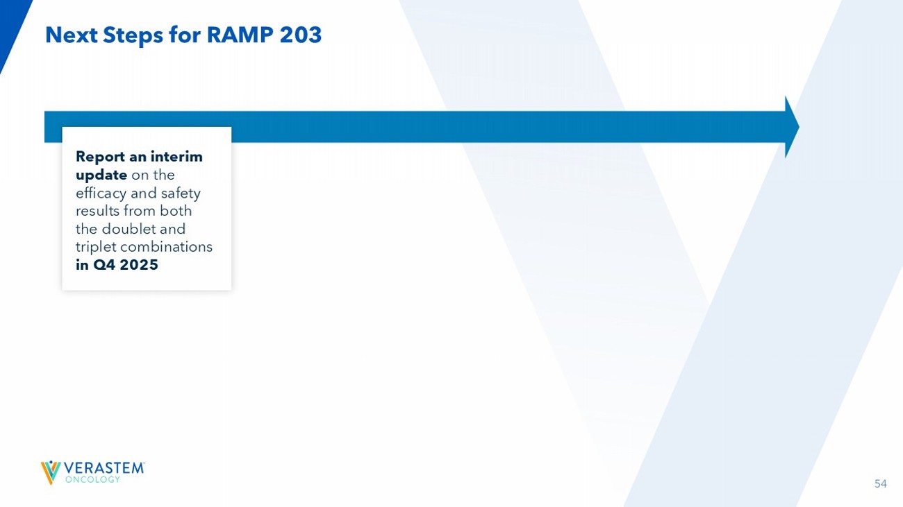 54 Next Steps for RAMP 203 Report an interim update on the efficacy and safety results from both the doublet and triplet combinations in Q4 2025