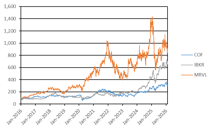 Notes linked to the least performing of the common stock of Capital One Financial Corporation, the common stock of Interactive Brokers Group, Inc. and the common stock of Marvell Technology, Inc. |