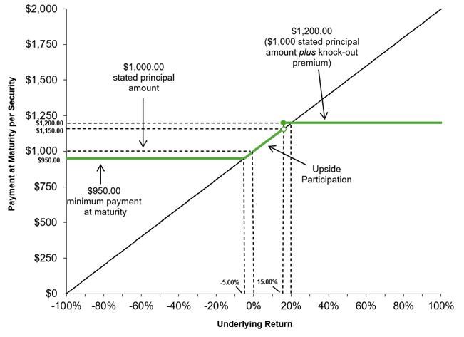 The examples below are based on a hypothetical initial underlying value of $100.00 and a hypothetical knock-out barrier value of $115.00 and do not reflect the actual initial underlying value or knock-out barrier value. For the actual initial underlying value and knock-out barrier value, see the cover page of this pricing supplement. We have used these hypothetical values, rather than the actual values, to simplify the calculations and aid understanding of how the securities work. However, you should understand that the actual payment at maturity on the securities will be calculated based on the actual initial underlying value and knock-out barrier value, and not these hypothetical values. For ease of analysis, figures below have been rounded.