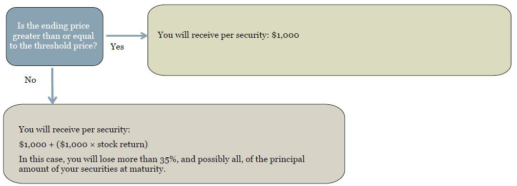 Since the hypothetical ending price is less than the hypothetical starting price but greater than the hypothetical threshold price, you would be repaid the principal amount of your securities at maturity.