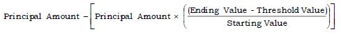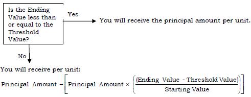 | Redemption Amount at Maturity: | If the notes are not called automatically prior to maturity, then at maturity you will receive a Redemption Amount that is equal to the principal amount if the Ending Value is less than or equal to the Threshold Value. If the Ending Value is greater than the Threshold Value, you will lose a percentage of the principal amount equal to the percentage of the increase in the value of the Market Measure above the Threshold Value and will receive a Redemption Amount that is less than the principal amount. In this case, if the Threshold Value is equal to 100% of the Starting Value, the Redemption Amount could be zero.