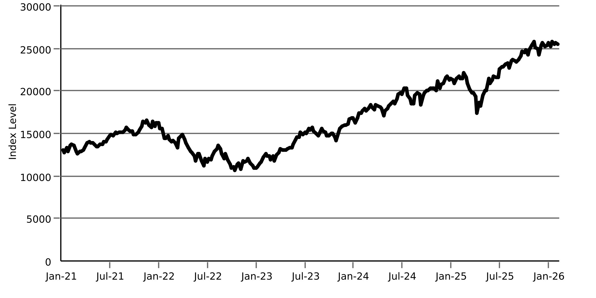 The following graphs set forth the historical performance of each Index based on the weekly historical closing levels from January 8, 2021 through January 30, 2026. The closing level of the Nasdaq-100 Index® on February 5, 2026 was 24,548.69. The closing level of the Russell 2000® Index on February 5, 2026 was 2,577.646. The closing level of the S&P 500® Index on February 5, 2026 was 6,798.40. We obtained the closing levels above and below from the Bloomberg Professional® service (“Bloomberg”), without independent verification.