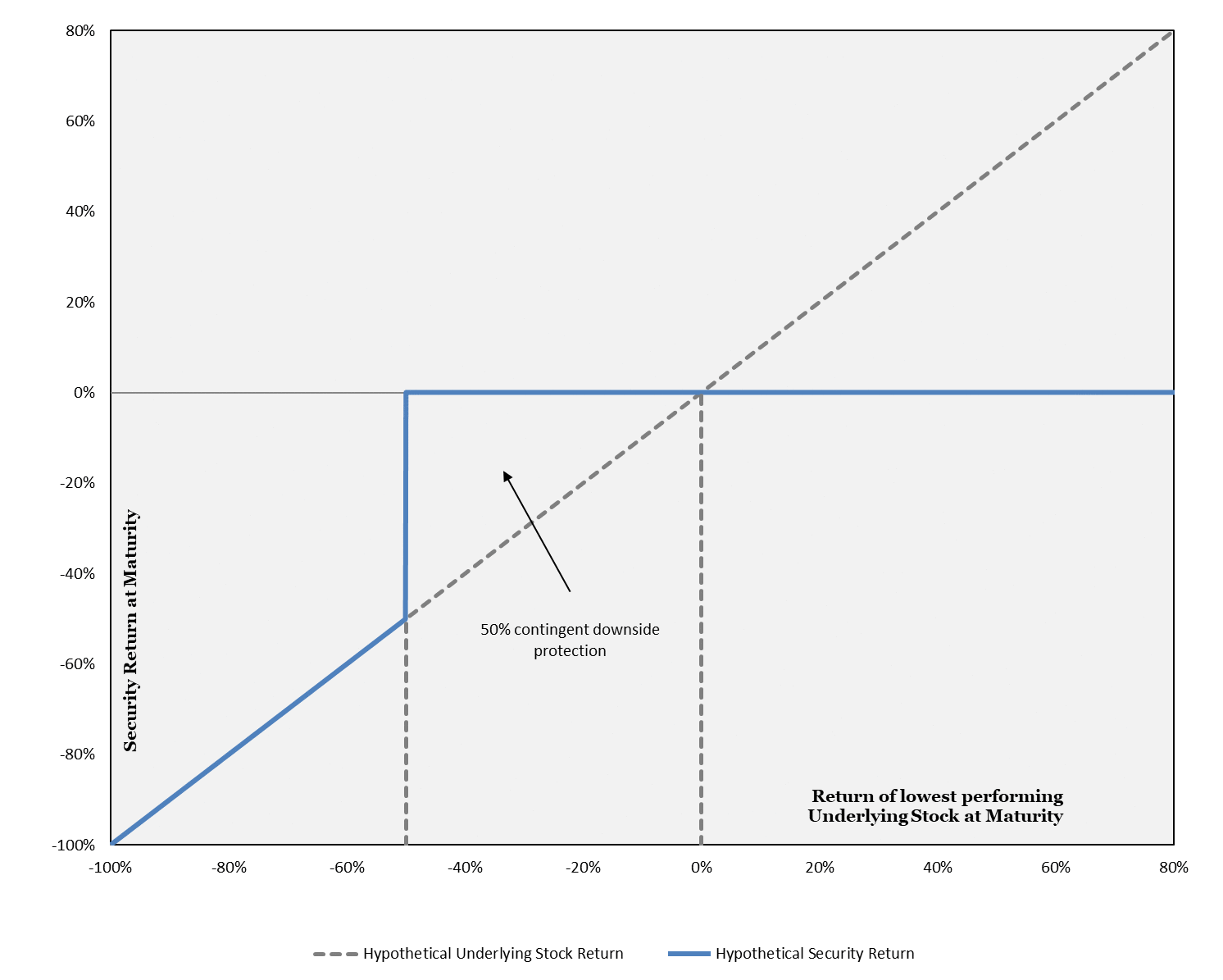 Since the hypothetical ending price of the lowest performing Underlying Stock is less than its hypothetical starting price, but not by more than 50%, you would receive the face amount of your securities at maturity.