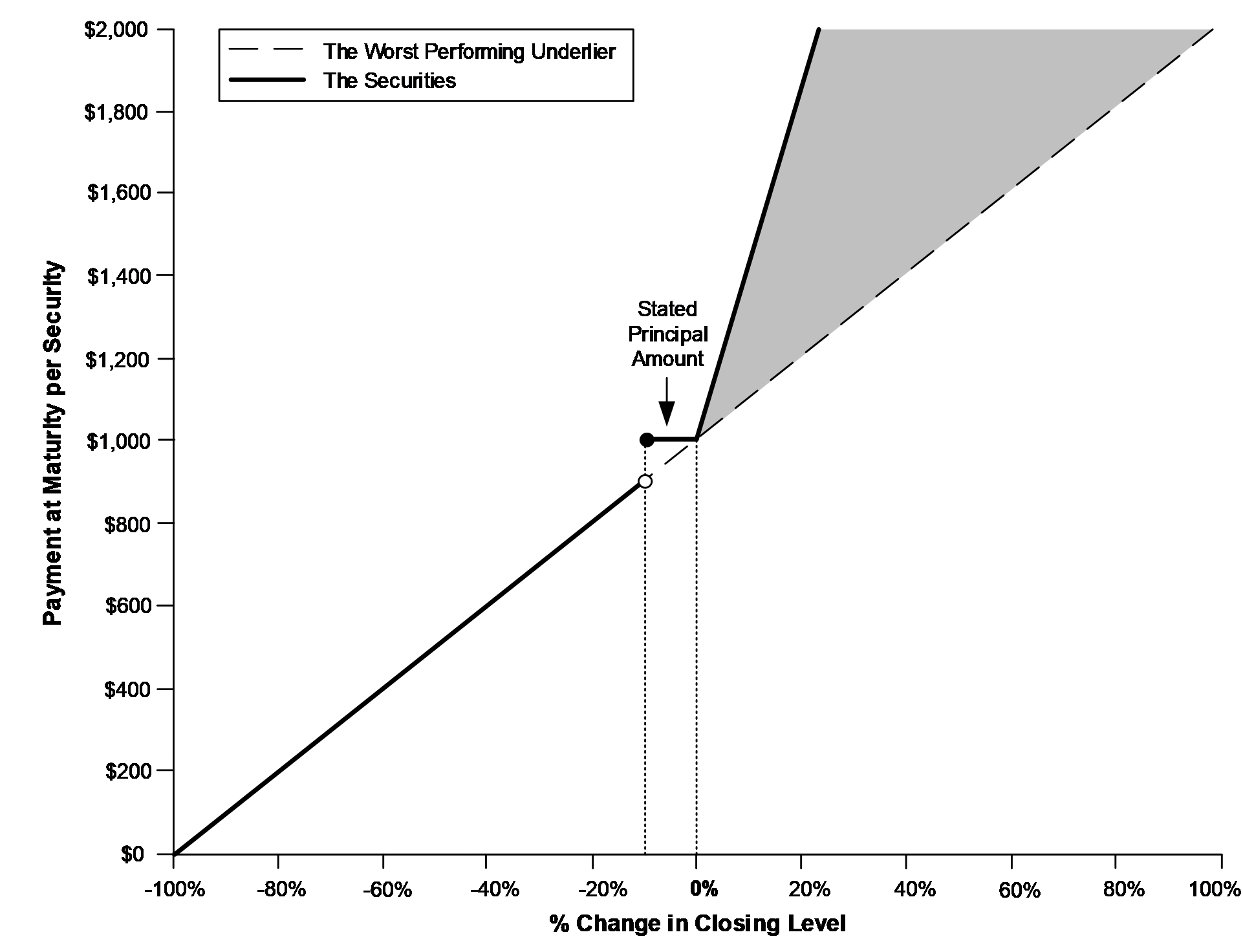 oIf the worst performing underlier appreciates 5%, investors will receive $1,208.50 per security, or 120.85% of the stated principal amount.