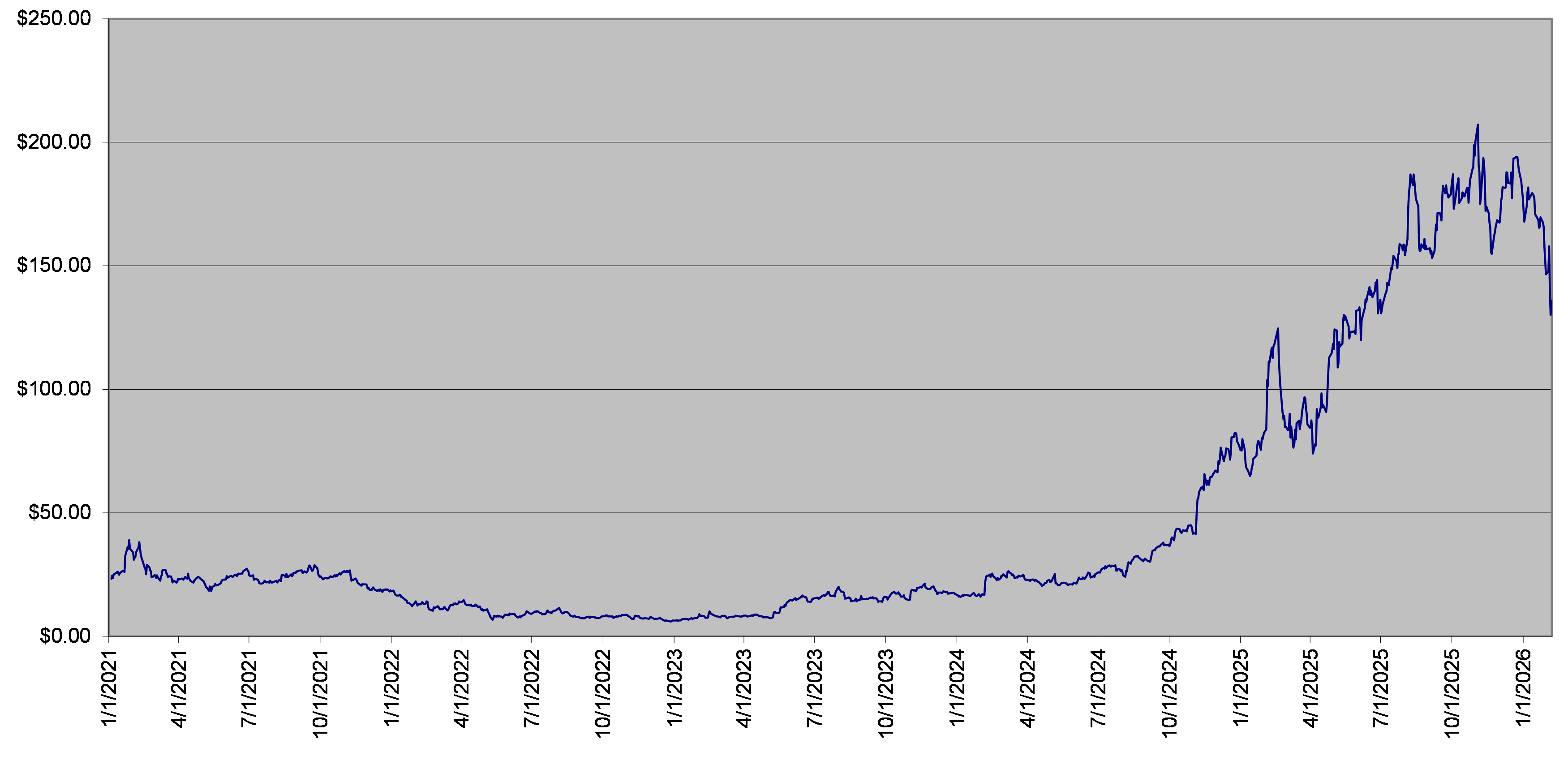 NVDA Stock Daily Closing Levels January 1, 2021 to February 6, 2026 |