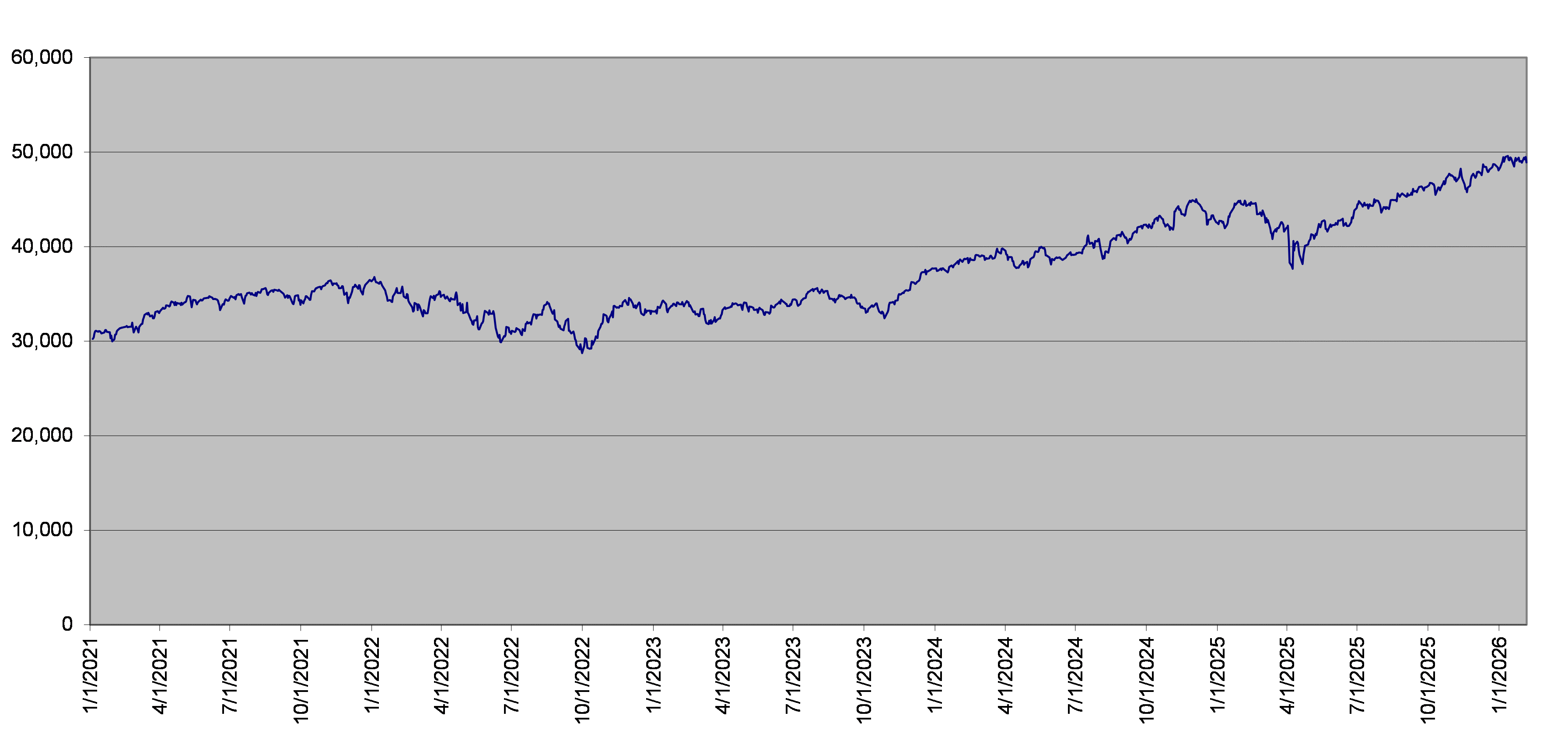 INDU Index Daily Closing Levels January 1, 2021 to February 5, 2026 |