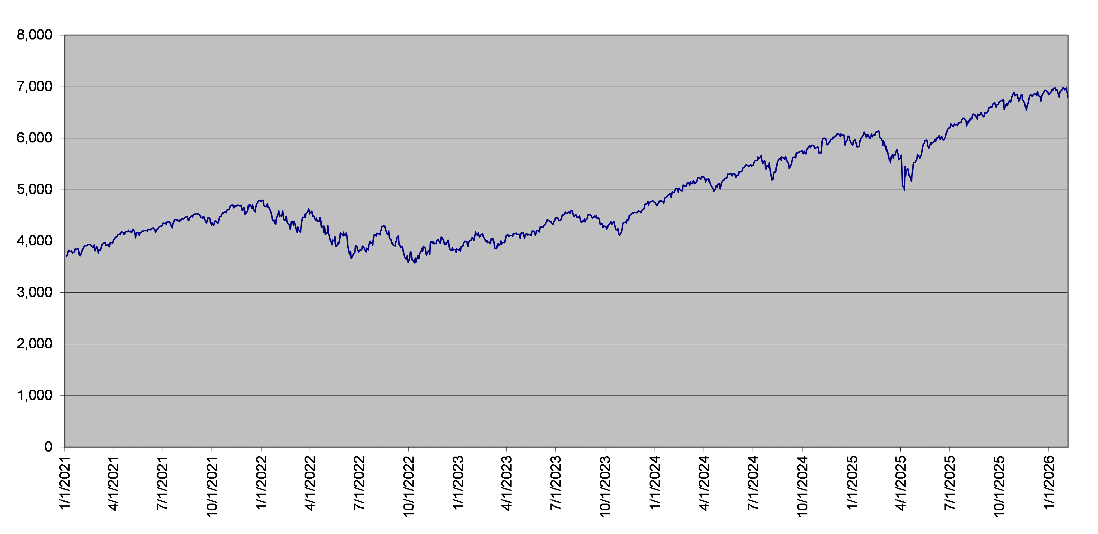 SPX Index Daily Closing Levels January 1, 2021 to February 5, 2026 |