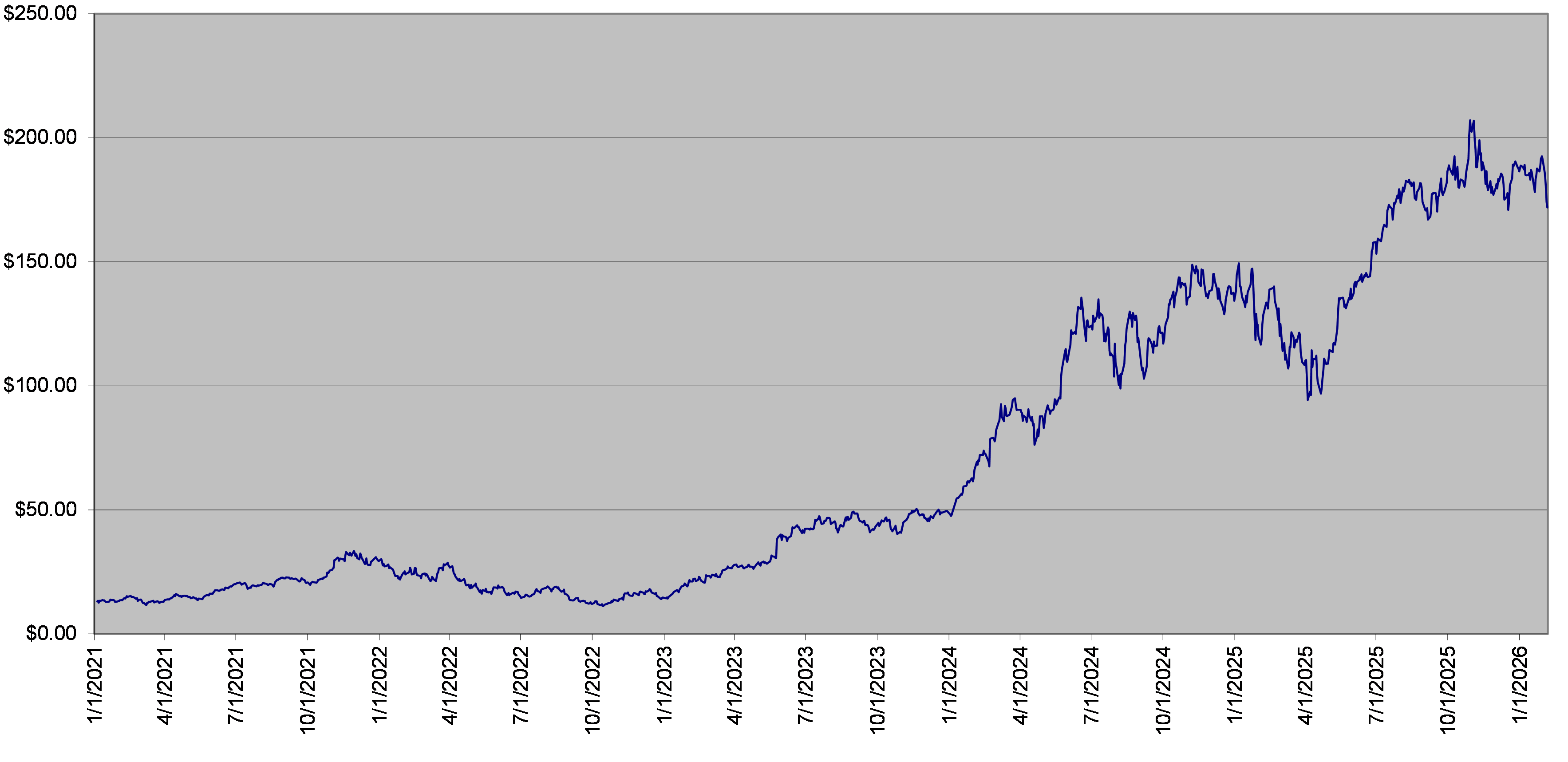 The closing level of the underlier on February 5, 2026 was $171.88. The following graph sets forth the daily closing levels of the underlier for the period noted below. We obtained the historical information presented in this document from Bloomberg Financial Markets, without independent verification. The underlier has at times experienced periods of high volatility. You should not take the historical closing levels of the underlier as an indication of its future performance, and no assurance can be given as to the closing level of the underlier at any time.