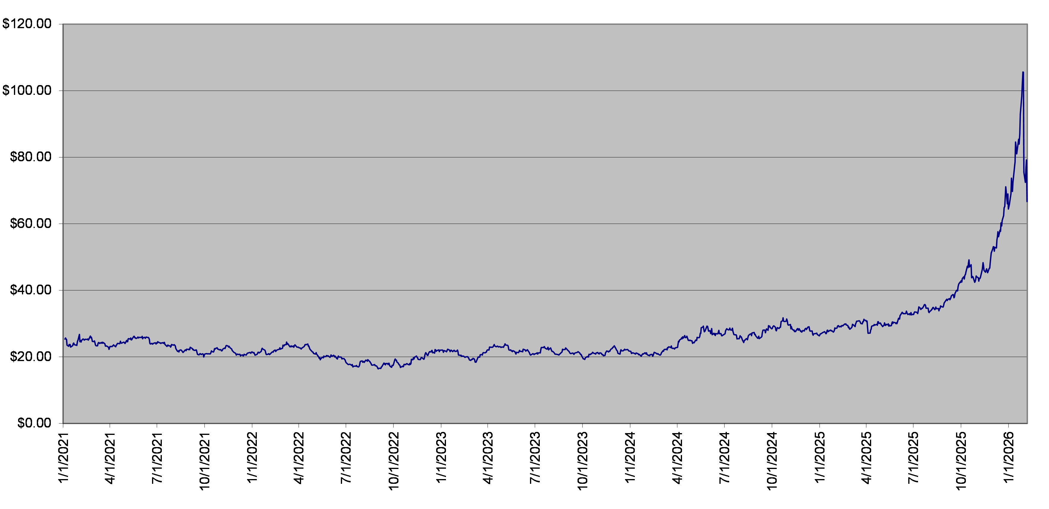 SLV Fund Daily Closing Levels January 1, 2021 to February 5, 2026 |