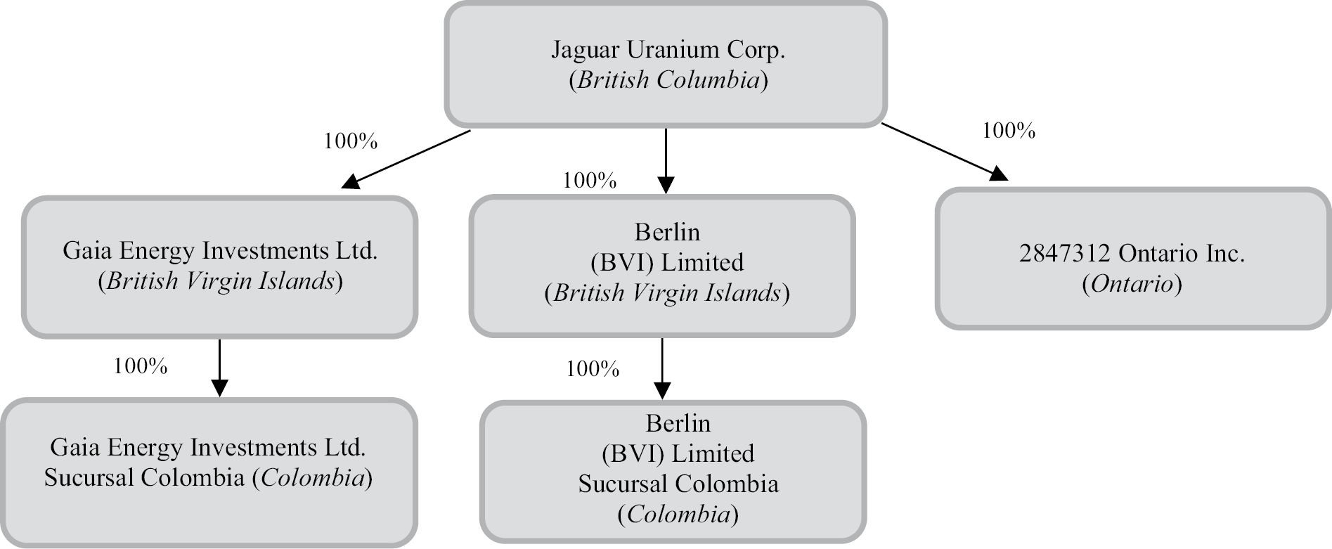 Gaia Energy Investments Ltd. (“Gaia” or the “Company”), was incorporated on April 19, 2006 and restored on November 16, 2015, in the British Virgin Islands (“BVI”) and is the parent of its wholly-owned subsidiary, Gaia Energy Investments Ltd. Sucursal Colombia (“Gaia Colombia”). Through Gaia Colombia, the Company is the legal and beneficial owner of a 100% interest in certain mining concessions located in the “Berlin Project”. The Berlin project is currently being explored and developed as a junior stage uranium asset located in Caldas Province of Central Colombia. The Company is a subsidiary of Green Shift Commodities Ltd. (the “Parent”).